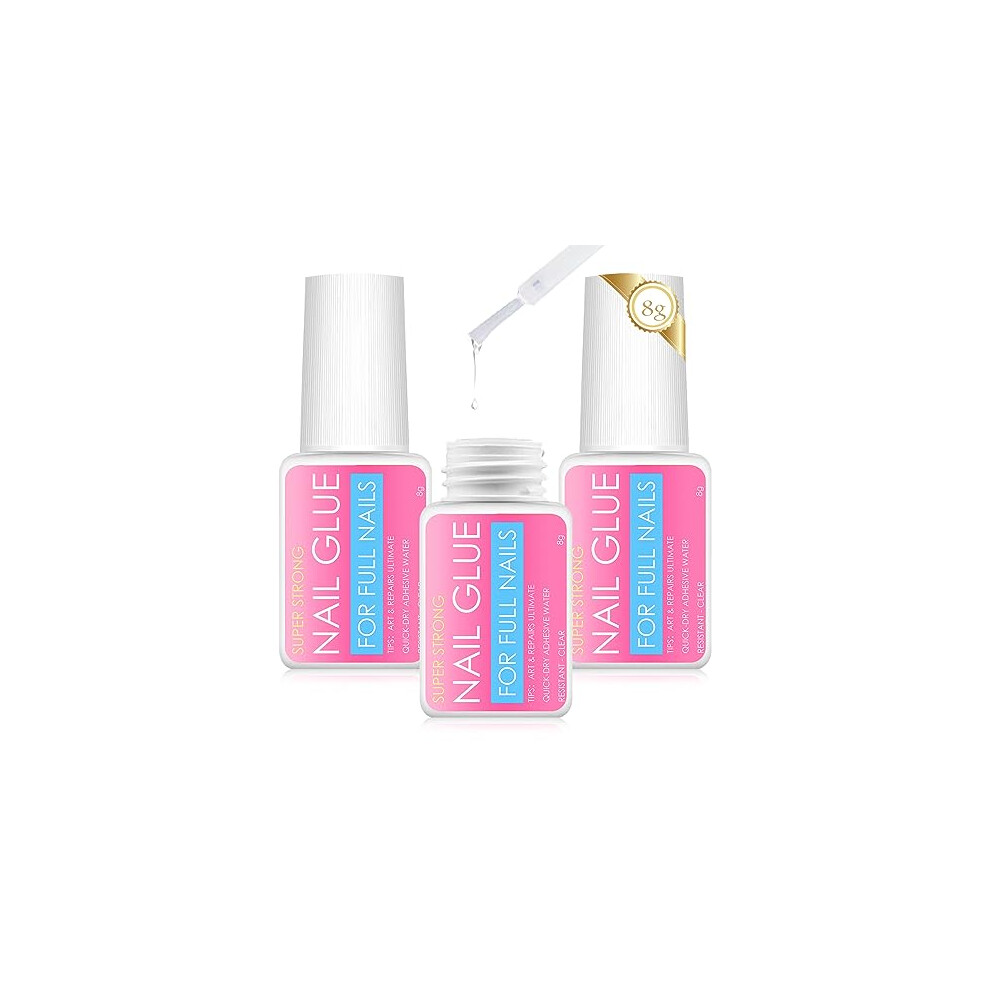 3 * 8g False Nail Glue Extra Strong,Nail Adhesive Bond Glue for Stick Press on Nails,Nail Glue Comes with Brushes, Easy to Apply to Nails, not Easy to