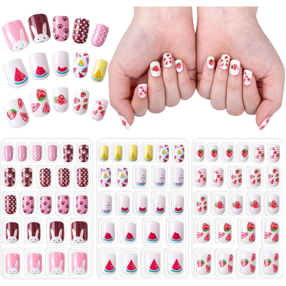 72pcs Kids Pre-glued Full-Cover Artificial Nails â 3 Cute Styles, Safe ABS, Easy Press-On Nails for Girls 6+, DIY Nail Art Gift