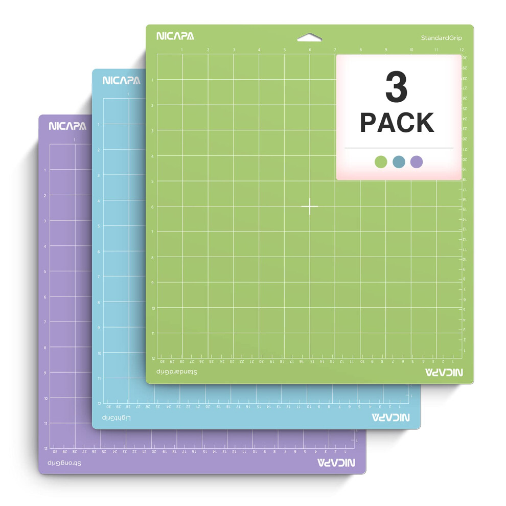 Nicapa Variety Grip Cutting Mats for Cricut Maker 3 Explore Air 3/Air 2/ Maker Accessories 3 Pack 12"x12" Adhesive Non-Slip Durable Plotter Mat
