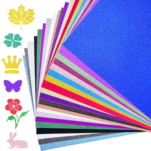 Glitter Card Stock, 20 Colors A4 Glitter Paper 250gsm Sparkle Shiny Cards Glitter Craft Paper for Cricut DIY Crafts Card Making Scrapbook Christmas Birthday Wedding Party Decor