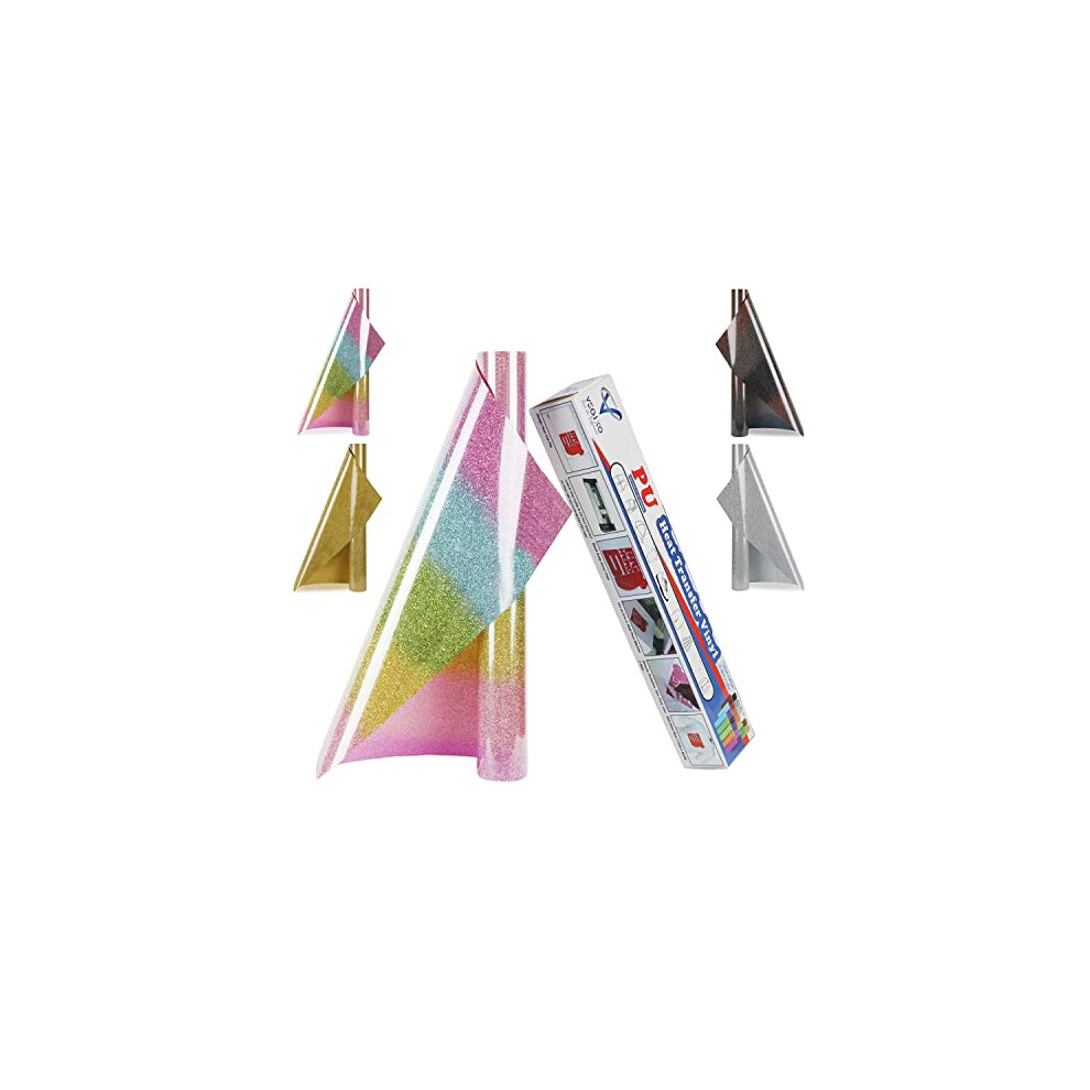 VEGIXO Heat Transfer Vinyl ? Rainbow Glitter 12inch x 8 Feet Iron on Vinyl Roll for Cricut & Cricut Heat Press,HTV Vinyl is Easy to Cut & Weed