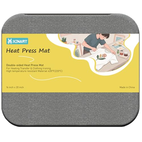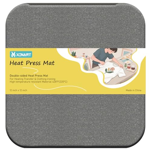 XINART Heat Press Mat for Cricut Easy Press Heat-Resistant Protective HTV Iron On Vinyl Project Infusible Ink Insulation Transfer 30.5cmX30.5cm (12"X12"), Thicker 1.8 CM/Double-Sided