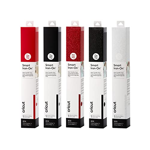 Cricut Smart Iron On Heat Transfer Vinyl Bundle | Includes: Red and Black + Glitter Red, Black and White | for Cricut Explore 3 and Cricut Maker 3 Machines