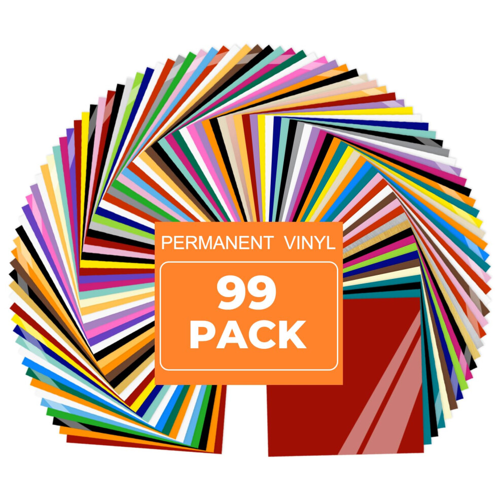 Prime Vinyl Permanent Vinyl for Cricut Machine - 99 Pack Adhesive Sheets, Assorted Colors for Cricut, Silhouette, Cameo Cutters, Signs, Craft