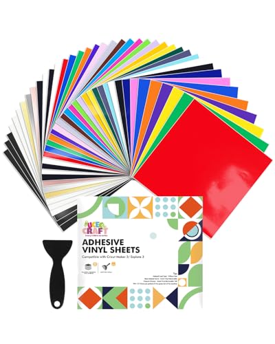 UCEC Permanent Vinyl Sheets 12" X 12", 41 Pcs Self Adhesive Vinyl for Cricut Maker 3/Explore 3-32 Assorted Colors Adhesive Vinyl for Cricut Machine, Ideal for Party Decoration, Deco Sticker, DIY Mug