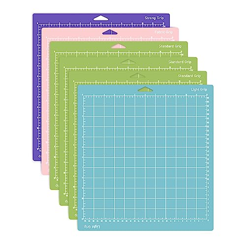 [6 Pack] Cutting Mat (12x12) Inch for Cricut Maker and Explore Cutting Machines, Light/Standard/Grip/FabricGrip Cut All The Essentials, from Delicate Paper to Heavier Specialty Materials