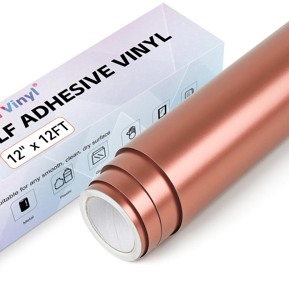Rose Gold Permanent Vinyl Roll, Rose Gold Vinyl for Cricut, 12â' x 15 FT, Metallic Self Adhesive Vinyl, Vinyl for Silhouette Cameo, Cutting