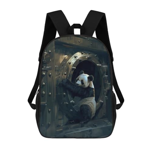 sinyumoney Panda Criminal Rob Bank Kids' Book Bag 3D Printing School Bag Boys And Girls Cool Knapsack Casual Back Bag for School Students 17inch