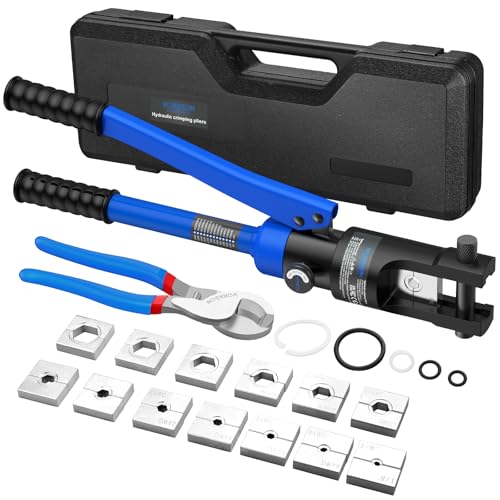 VORXEON 12 Tons Hydraulic Crimping Pliers Crimping Pliers 8-300 mm²(1/8-600 MCM) 13 Sets of Crimping Forms with 10 Inch Cable Scissors AWG Wire Knife for Copper Aluminium Cable Lugs