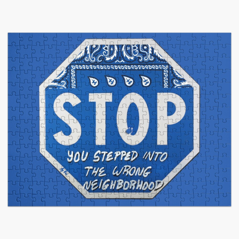 (Road Sign STOP crip bandana with bullet hole=8098) Jigsaw Puzzle Wooden 300-Piece for Adults Kids Seniors- Home Decor Family Activity Game Wall Art 3