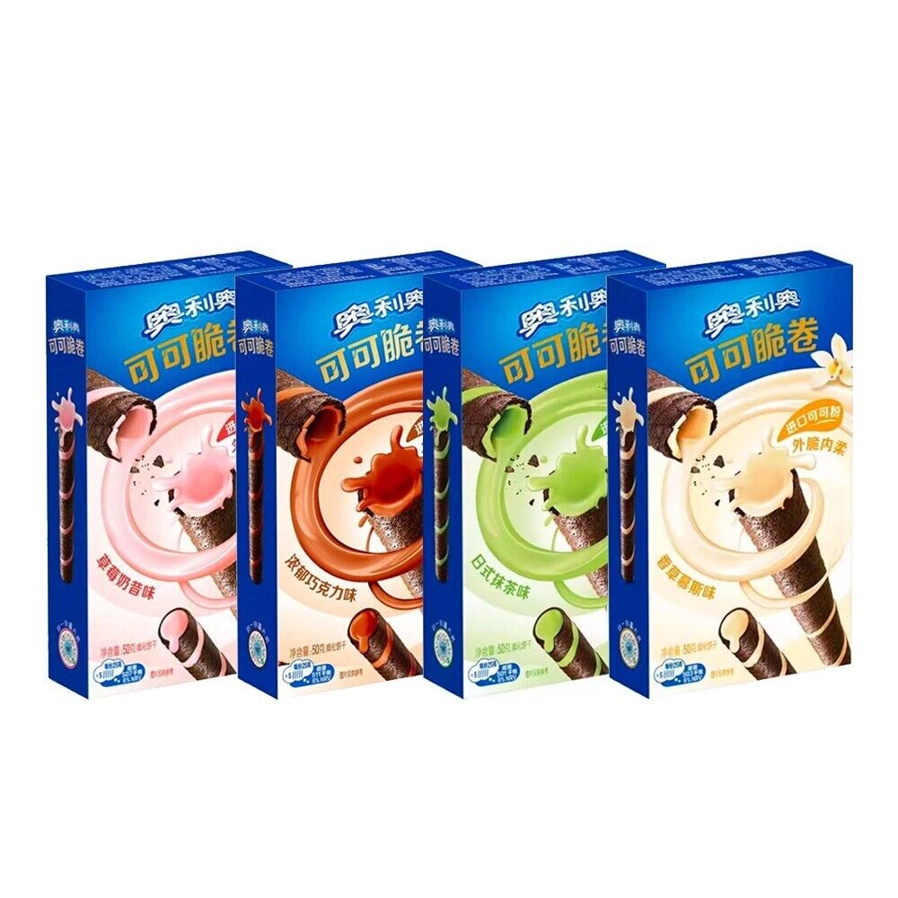 OREO Cocoa Crispy Roll Biscuit Matcha,Chocolate,Strawberry,Vanilla 50g (4 Packs)