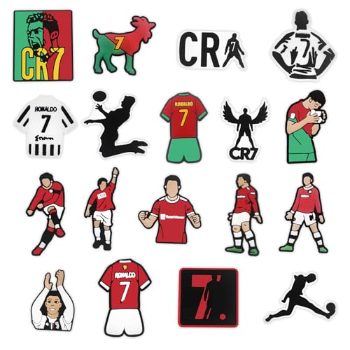 18 Pcs Shoe Charms for Croc CR7 Football Croc Charms for Adults Kids PVC Cool Shoe Accessories Soccer Boys Football Accessories for Clog Birthday CR7 Gifts for Boys