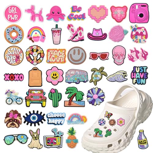 37PCS Pink Shoe Charms for Croc Adult Women Cute Flower Charms Pins Anime Badges for Summer Shoe Decoration Accessories