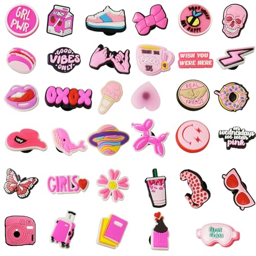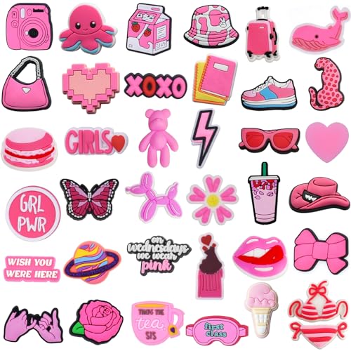 Shoe Charms for Clog 35pcs Pink Shoe Accessories Charms for Croc, Cute Shoe Decoration Charms for Wristband, Shoe Charms for Girls Birthday Gift Party Favors