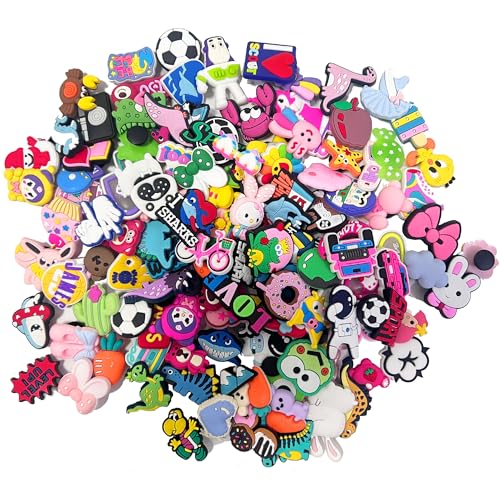Ainiv Lot of 110PCS Random Shoe Charms for Clog, Shoes Decorations Wristband Bracelet Party Favors for Girls Boys, Shoe Accessories Charms for Croc, Party Decorations, Birthday, Christmas
