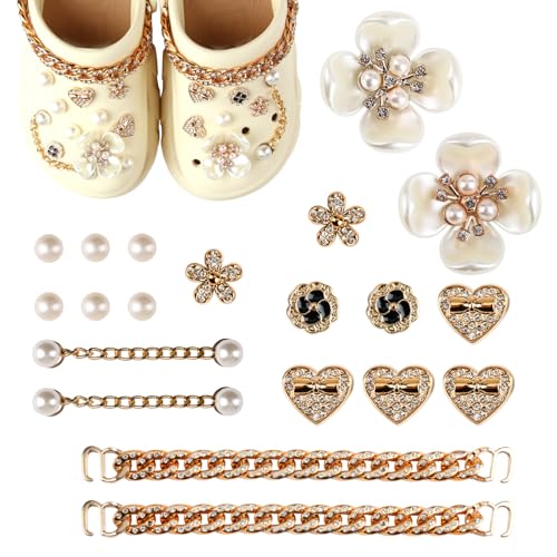 16 Pcs Shoe Charms for Clogs, Shoe Accessories Charms for Croc, Cute Wristbands Bling Pearl Fashion Crystal Diamond Decoration for Girl/Women/Kids, Gift for Christmas, Children’s Day, Birthday