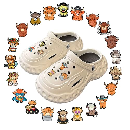Highland Cow Croc - 21PCS Highland Cow Gifts for Women, Cute PVC Shoe Clips for Croc, DIY Shoe Accessories, Funny Animal Jibbitz for Casual/Beach,Farm Animal Charms Decor Women Adults, Charms for Clog