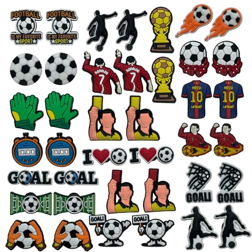 Asheyya 40PCS Football Charms for Croc, Charms Boys and Girls for Croc, PVC Waterproof Cartoon Decoration DIY Shoe Accessories for Kids,Teens,Adults
