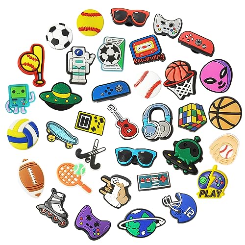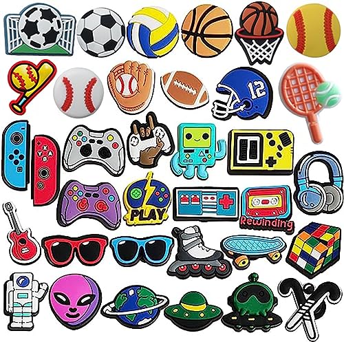 35 PCS Shoe Charms for Basketball Soccer Baseball Croc Charms, Video Game,Astronaut and Sports Croc Pins for Wristbands Shoes Charm Party Favor Accessories Gifts for Boys Teens