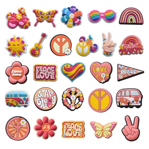 Shoe Charms for Shoes, 26 pcs PEACE & LOVE- PVC Cartoon Shoe Decoration for Croc, Decoration Accessories for Charm ornament Girls Boys Men Women Party Favor Gifts
