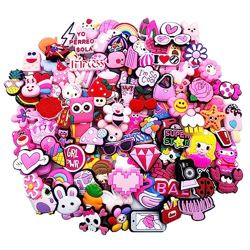 Lot of 30/50 Pcs Random Pink Shoe Charms for Croc, Different Cool Cute Shapes Packs Bracelet Wristband Accessories for Shoe Decorations Party Gift