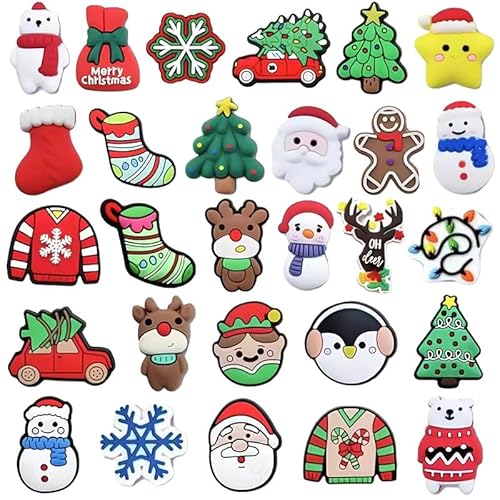 35 PCS Christmas Croc Charms Christmas Shoe Charms for Crocs Clog Bracelets Decoration, Santa Elk Snowman Cute Shoe Charms Shoe Decorations PVC Shoe Accessories Charms for Kids Girls Boys