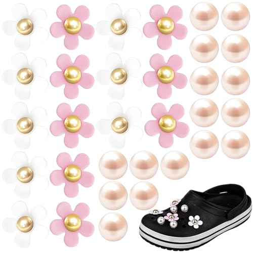 36 PCS Flower Pearl Shoe Charms Bling Shoes Charm Detachable Shoes Charm Cute Shoe Decorations for Croc DIY Charms Accessories for Women Girls Birthday Party Gifts
