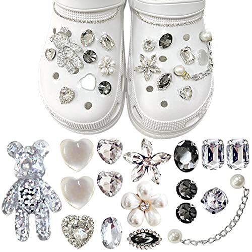 18 Pcs Shoe Charms for Clog Shoes, Crystal Diamond Shoe Accessories, Rhinestone Bling Charms for Clog Shoes Decoration, Shining Shoe Decoration Charm, DIY Clog Sandals Croc Accessories Girls, White