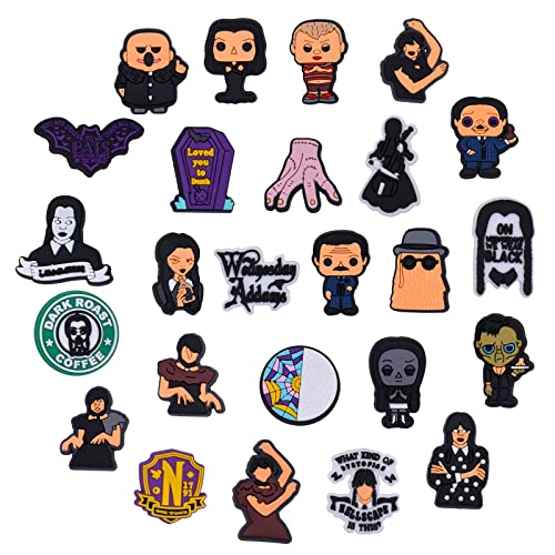 AYNKH 25 PCS Wednesday Shoe Charms for Croc, Addams Family Decoration Accessories for Clog Bubble Slides