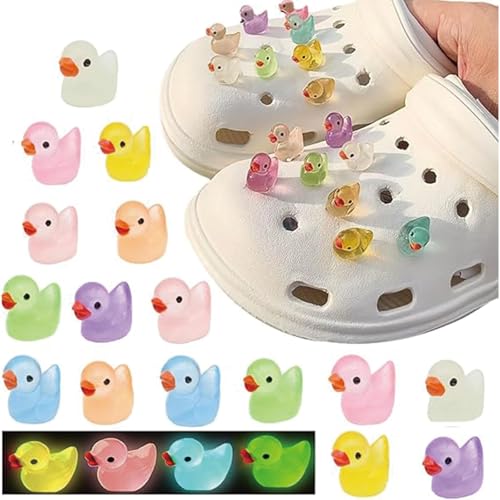 Croc Accessories,16pcs Duck Croc Charms, Fun & Colourful Duck Shoe Accessories For Crocs Noctilucent,Perfect For Birthday Parties & School Activities,Crocs Accessories For Kids Adult & Diy Enthusiasts