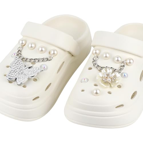 WrteEase 20PCS Bling Croc Charms - Flower Pearl & Bracelet Wristbands - Sparkling Shoe Decoration Accessories for DIY, Birthday Party Gifts, and Shoe Customization