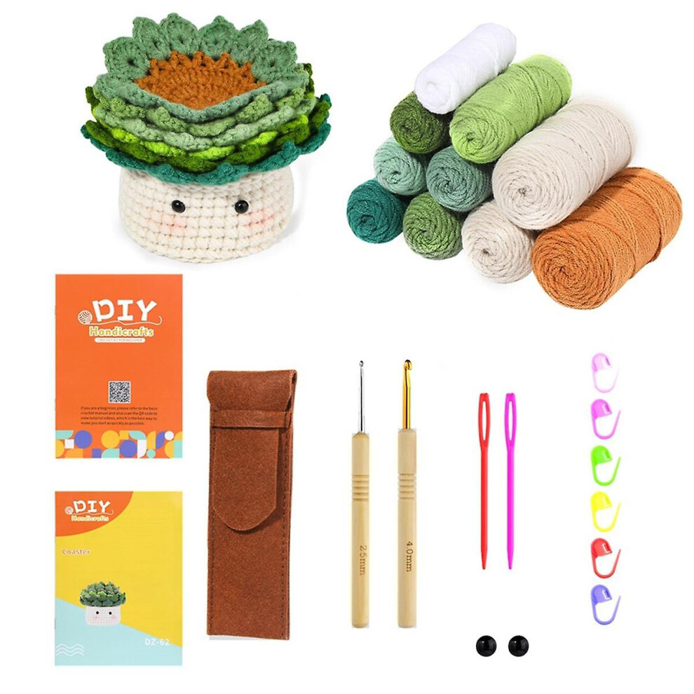 Crochet Kit For Beginners - 6pcs Coasters In A Plant Pot Crochet Start Kit,beginner Crochet Kit Wit