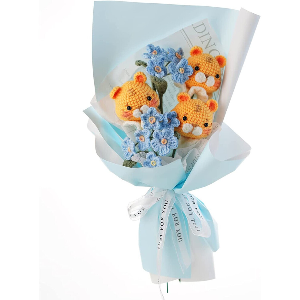 Beginner Crochet Kit,Crochet Forget-me-not Preserved Flower Bouquet,Knitted Artificial Flowers Materials Kit