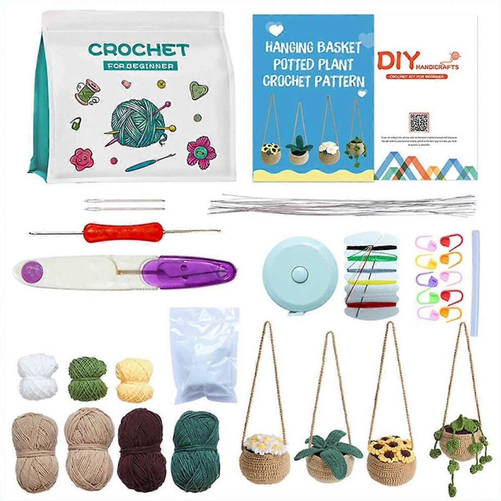 Beginner Crochet Kit, Hanging Potted Plant Crochet, Adult Learning Crochet Kit, Potted Plant Decorative Crochet Kit,4PCS