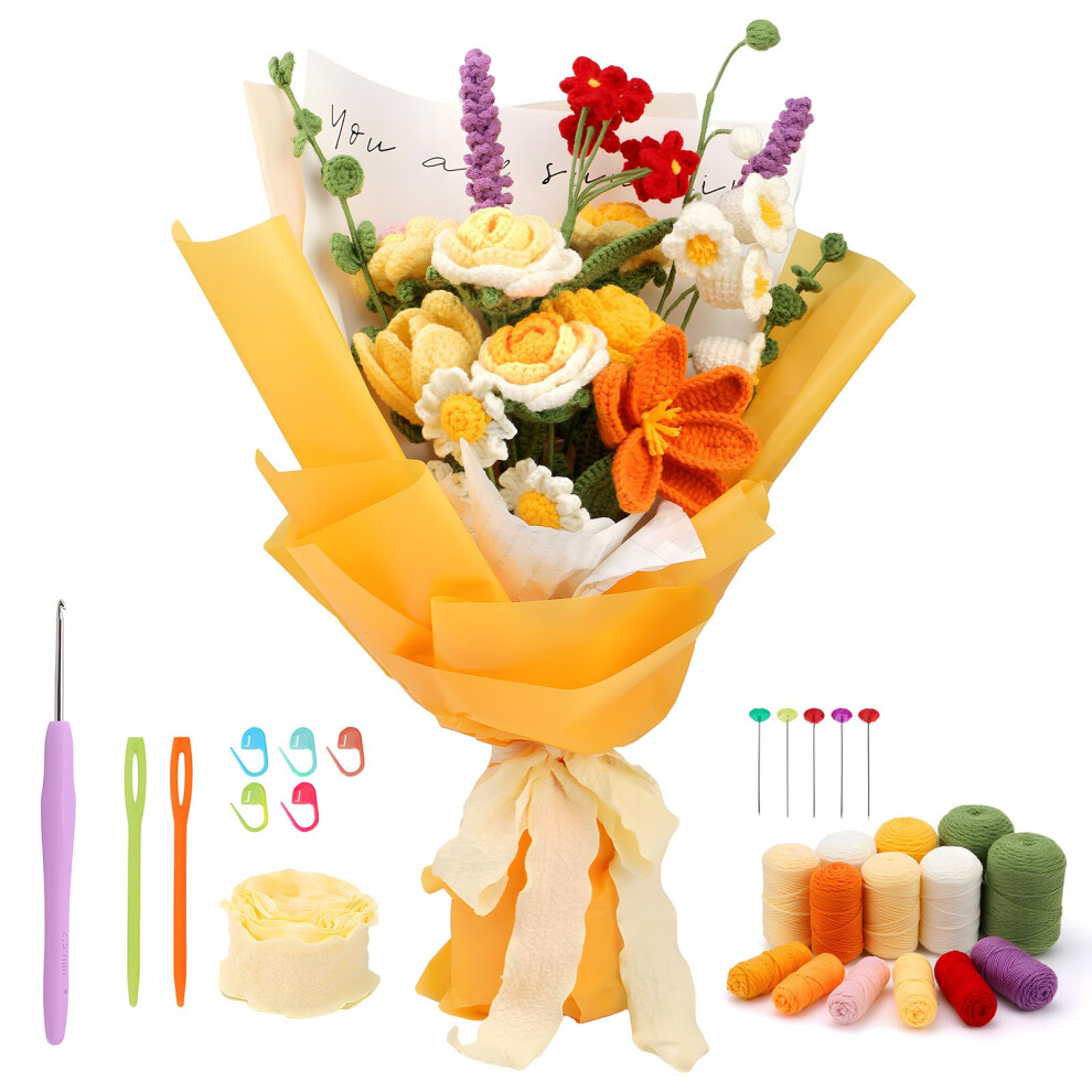 Beginner Crochet Kit Rose Bouquet Crochet Kit Flower Crochet Kit for Starters Step-By-Step Video Tutorials Orange
