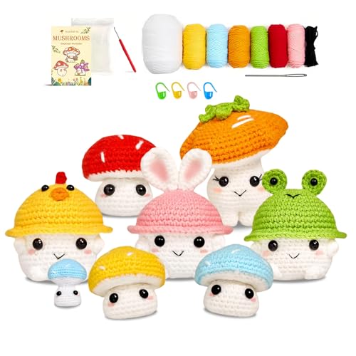 RUIOMII Mushroom Crochet Kits for Starters, Beginner Crochet Kit for Adults, 7Pcs Knitting Kit with Step-by-Step Video Tutorials