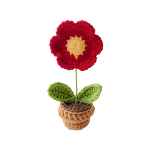 Diheohg Hand Knitted Potted Flowers, Crochet Artificial Plants, Table Decoration Gift Woven Finished, 1 Piece A