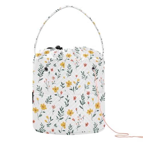 Rustic Spring Chic Flowers Crochet Yarn Bag Yarn Storage Containers Portable Needle Storage for Art Supply Knitting Organizer