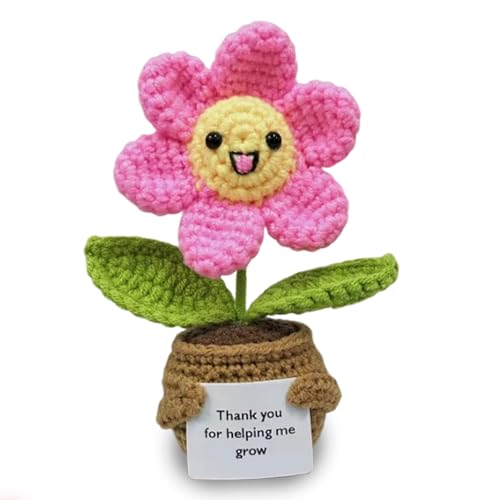 louuuou 1 PCS Crochet Teacher Gifts Crochet Flowers Positive Gifts, Emotional Support Gift, Handmade Knitted Plant Office Desk Decoration Suitable for Gifting to Teachers Family Friends and Clas