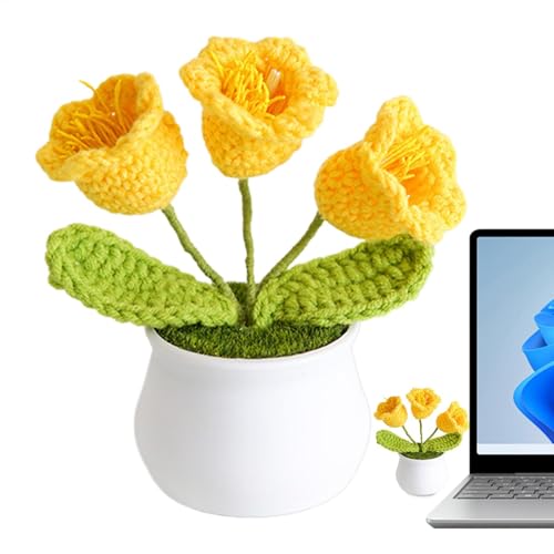 Generisch Knitted Wool Flower - Hand-Woven Wool Vivid Crochet Flowers, Decorative Desktop Craft Zinc, Multifunctional Flower Decorations for Windowsill, Bookshelf