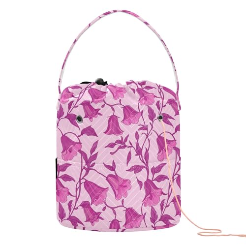 Yuiboo Crochet Bag Flowers Cute Lavender Purple Crochet Storage Organizer with Holes Storage Bag for Knitting Needle Crochet Organizers