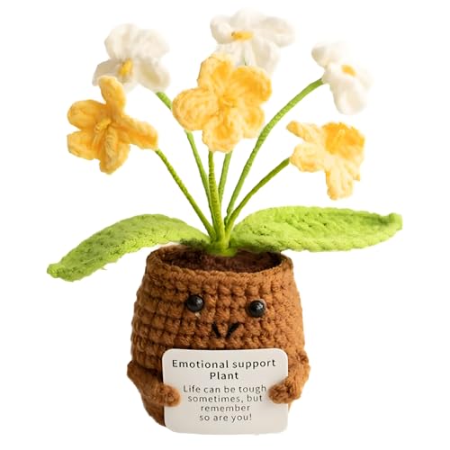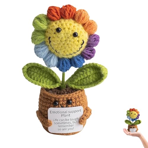 Onperpoe Emotional Support Crochet Flowers Positive Sunflower Gifts, Emotional Support Plant Crochet Gift Cheer Up Cute Stuff Handmade Christmas Birthday Get Well Soon Gifts for Women Men