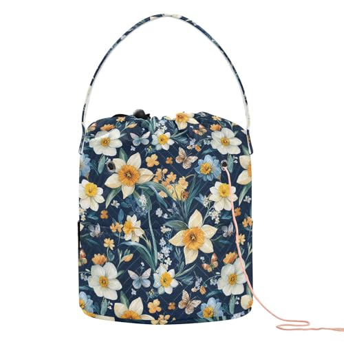Rustic Spring Chic Flowers Crochet Yarn Bag Yarn Storage Tote with Holes Crochet Tote for Knitting Kit Knitting Organizer