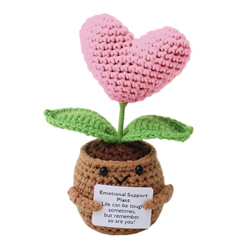 Onperpoe Emotional Support Crochet Flowers Positive Sunflower Gifts, Emotional Support Plant Crochet Gift Cheer Up Cute Stuff Handmade Christmas Birthday Get Well Soon Gifts for Women Men, Pink