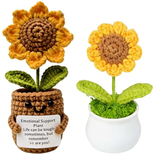 MIFKLMV Positive Emotional Support Potato Sunflower Pot, Emotional Support Gift, Inspirational Crochet Flowers Novelty Weird Good Luck Emotional Support Cheer Up Gifts for Kids Women Men 2Pcs