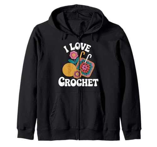 I Love Crochet Yarn Hook Flowers Art Zip Hoodie