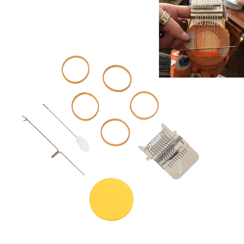Wooden Darning Mini Loom Machine DIY Sewing Quickly Darning Loom with Rubber Bands Crochet Darning Machine for Clothes 10 Pins