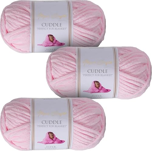 Utopia Crafts Cuddle Super Chunky Chenille Yarn Baby Pink, 100g 60m Ball, Fluffy, Soft & Easy to Use, Perfect for Crochet & Knitting, Machine Washable, Beginner-Friendly Wool Alternative - Pack of 3