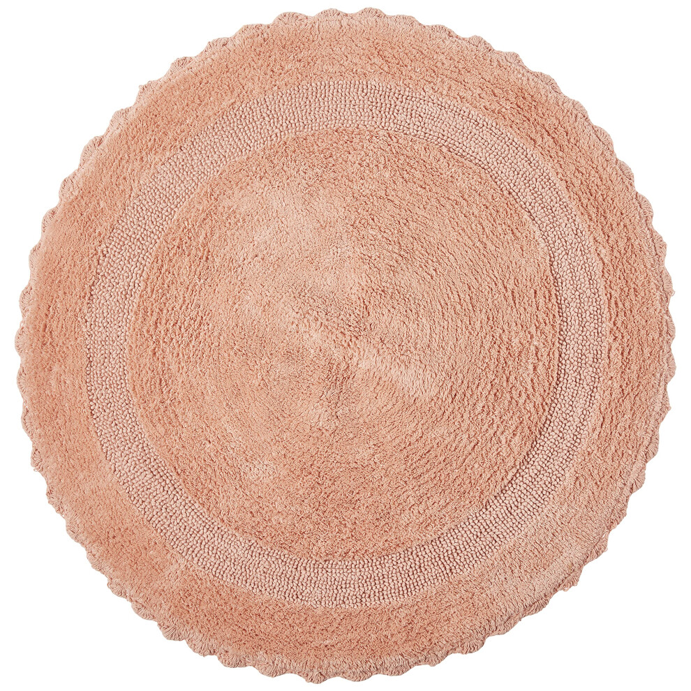 Saffron Fabs Bath Rug Cotton 36 Inch Round Reversible - Different Pattern On Both Sides Coral Hand Knitted Crochet Lace Border Machine Washable