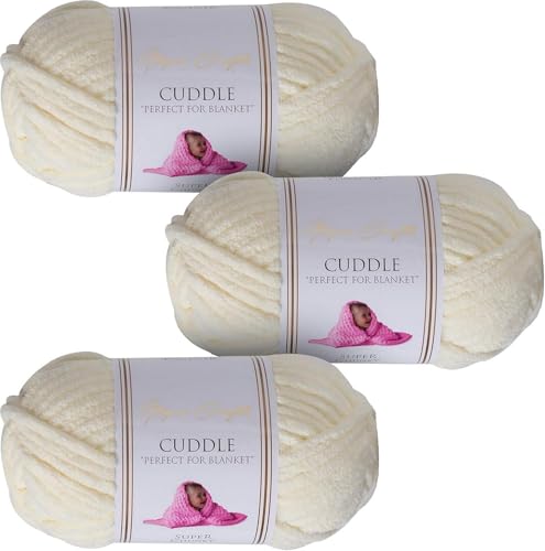 Utopia Crafts Cuddle Super Chunky Chenille Yarn Cream, 100g 60m Ball, Fluffy, Soft & Easy to Use, Perfect for Crochet & Knitting, Machine Washable, Beginner-Friendly Wool Alternative - Pack of 3